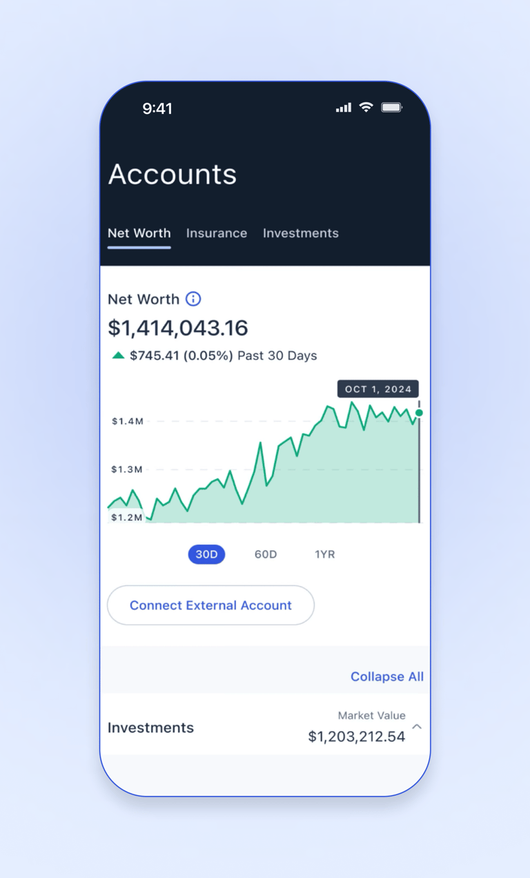 Enable clients to understand their full financial picture — from spending habits to net worth, investments, and insurance applications