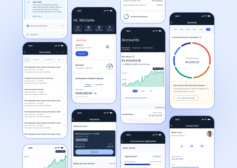 I led the design of Northwestern Mutual’s first consumer mobile product on iOS and Android, empowering clients to manage and grow their wealth while driving engagement, retention, and revenue growth for the business.