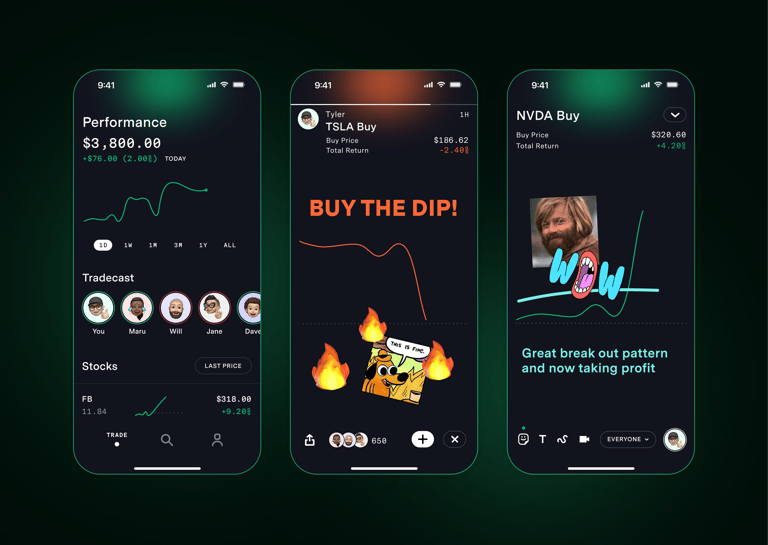 A social trading platform that enables traders to share strategies, discuss market trends, and execute commission-free trades, all within a single community-driven app.